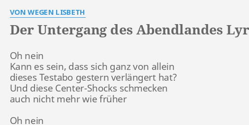 Der Untergang Des Abendlandes Lyrics By Von Wegen Lisbeth Oh Nein Kann Es