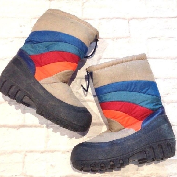 Vintage Shoes Vtg 7s Rainbow Blue Sole Ski Snow Moon Boots Poshmark
